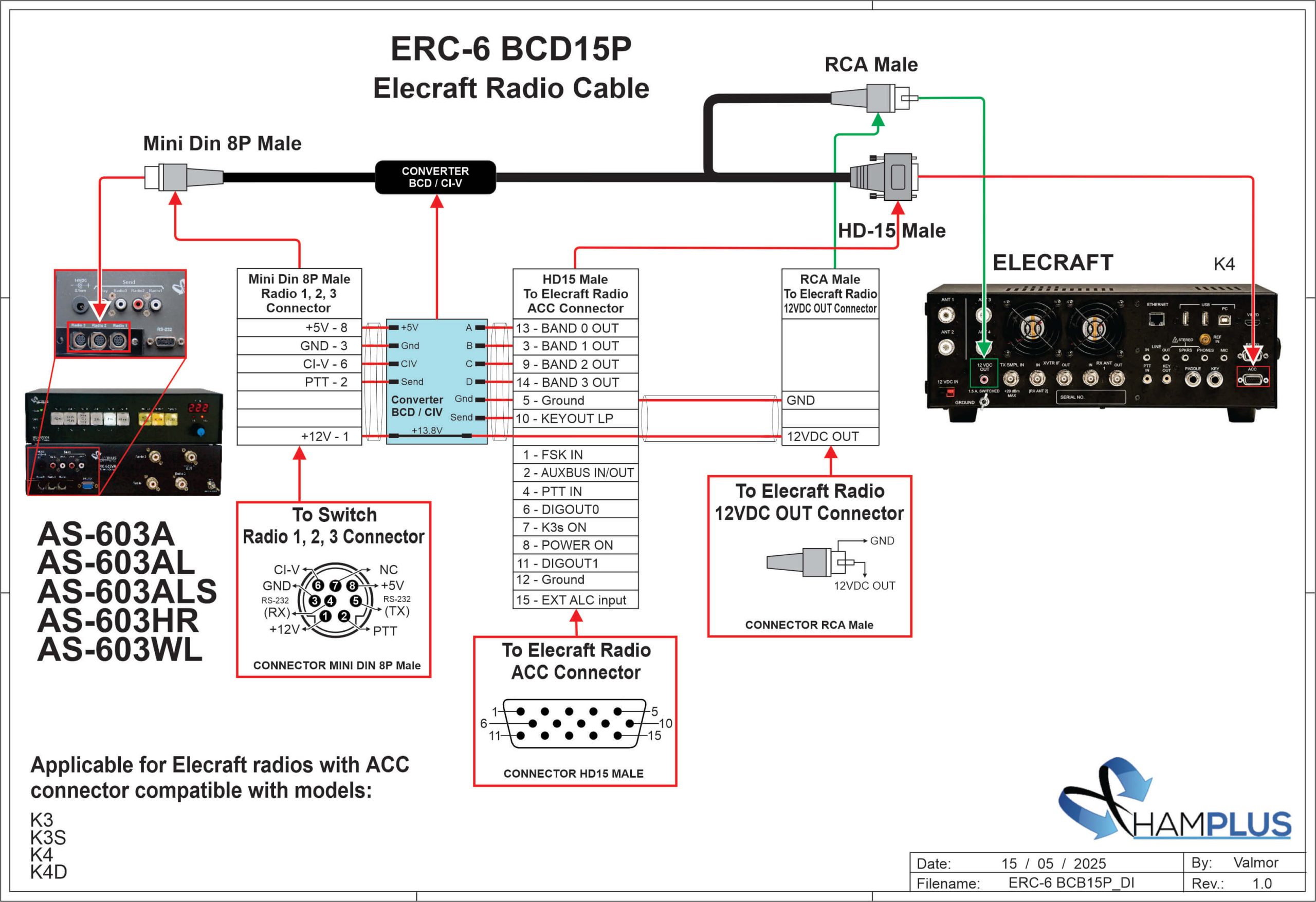 - Radio Cable for Elecraf K3, K3S, K4 and K4D
